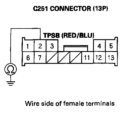 10. Check for continuity between C251 connector (13P) terminal No. 2 and body ground.