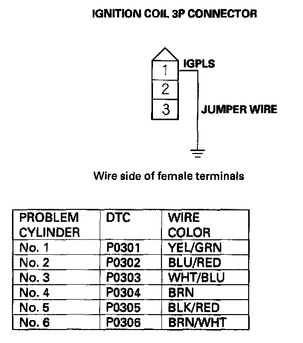 34. Connect appropriate ignition coil 3P connector terminal No. 1 to body ground with a jumper wire (see table).
