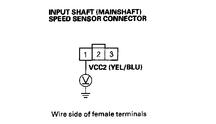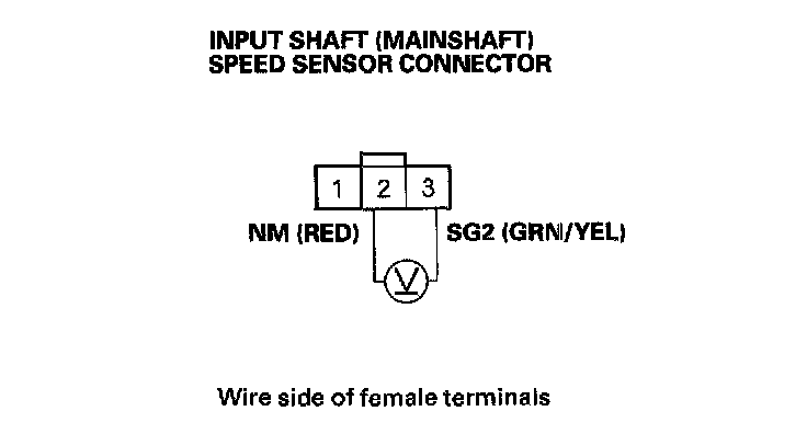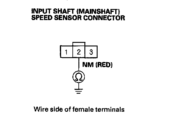 12. Measure the voltage between input shaft (mainshaft) speed sensor connector terminal No. 1 and body ground.