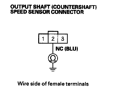14. Check for continuity between output shaft (countershaft) speed sensor connector terminal No. 2 and body ground.