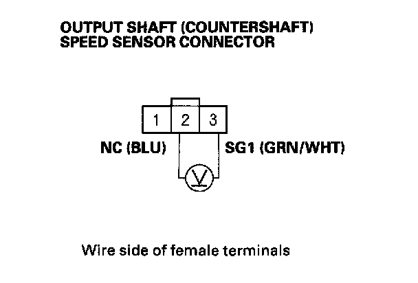 19. Measure the voltage between output shaft (countershaft) speed sensor connector terminals No. 2 and No. 3.