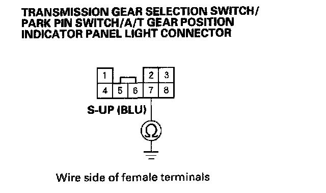 11. Check for continuity between transmission gear selection switch connector terminal No. 7 and body ground.