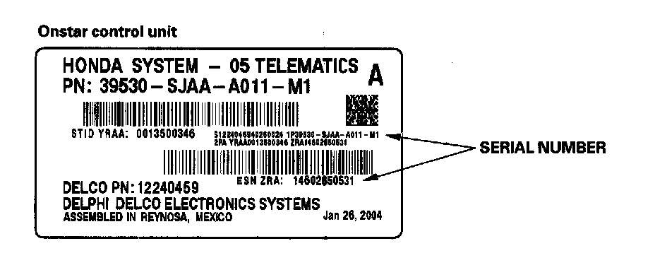 If the OnStar control unit is replaced, you must call OnStar dealer support by regular telephone and register the new serial number(s).