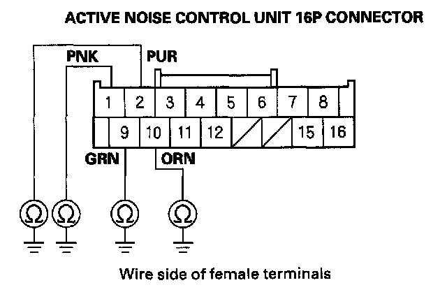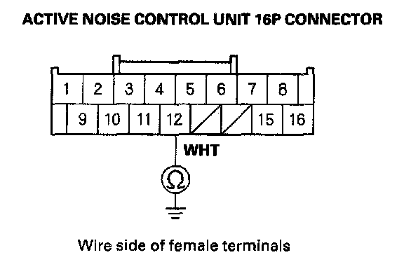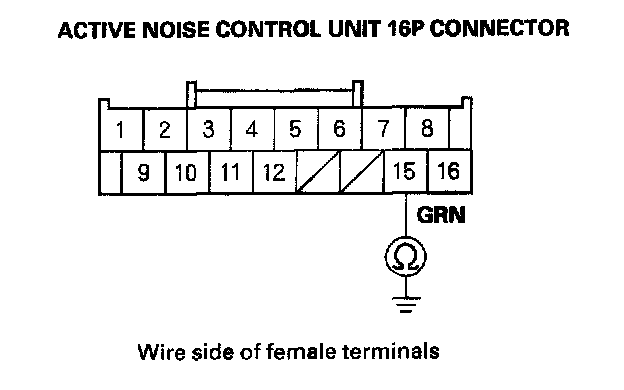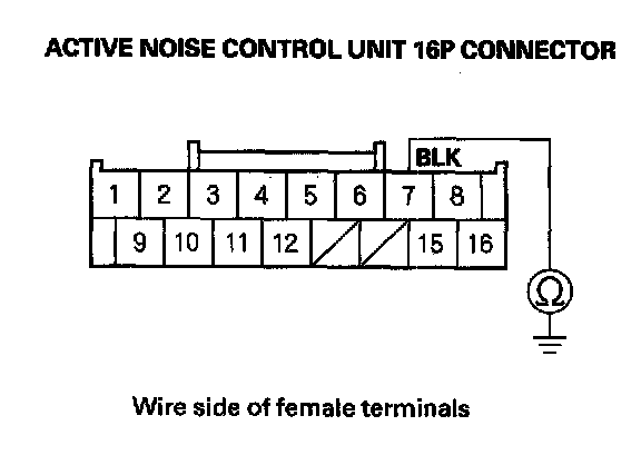 31. Check for continuity between the active noise control unit 16P connector No. 7 terminal and body ground.