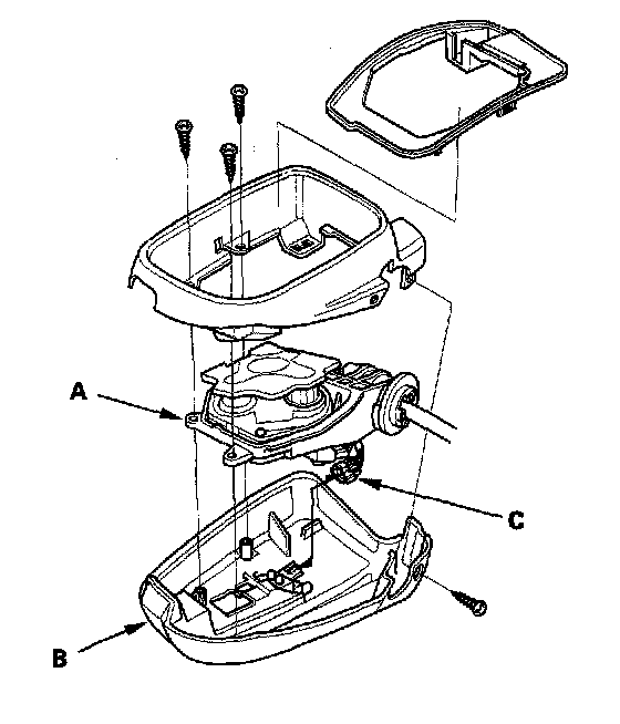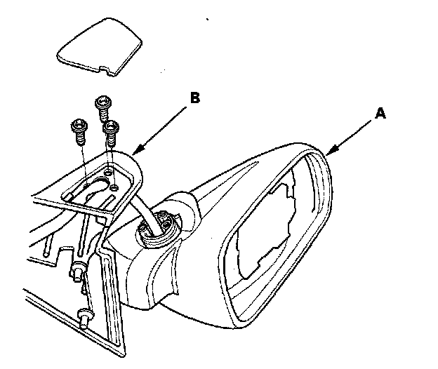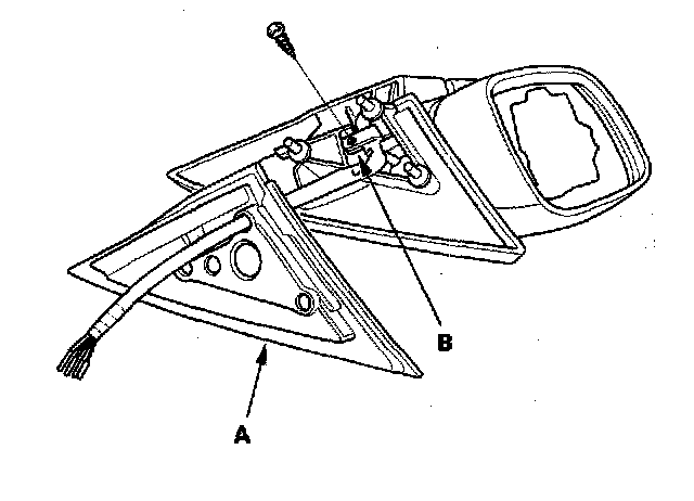 5. Remove the three Torx screws, and separate the mirror housing (A)from the bracket (B).
