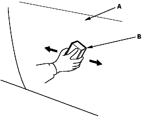 Polish the top coat surface (A) with waterproof P1200 to P2000 sandpaper (B), and clean the surface by air blow and fat, oil and grease.