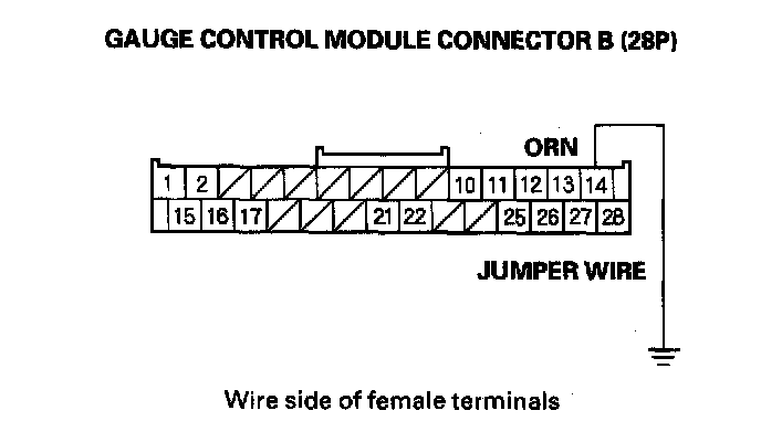 13. Connect gauge control module connector B (28P) terminal No. 14 and body ground with a jumper wire.