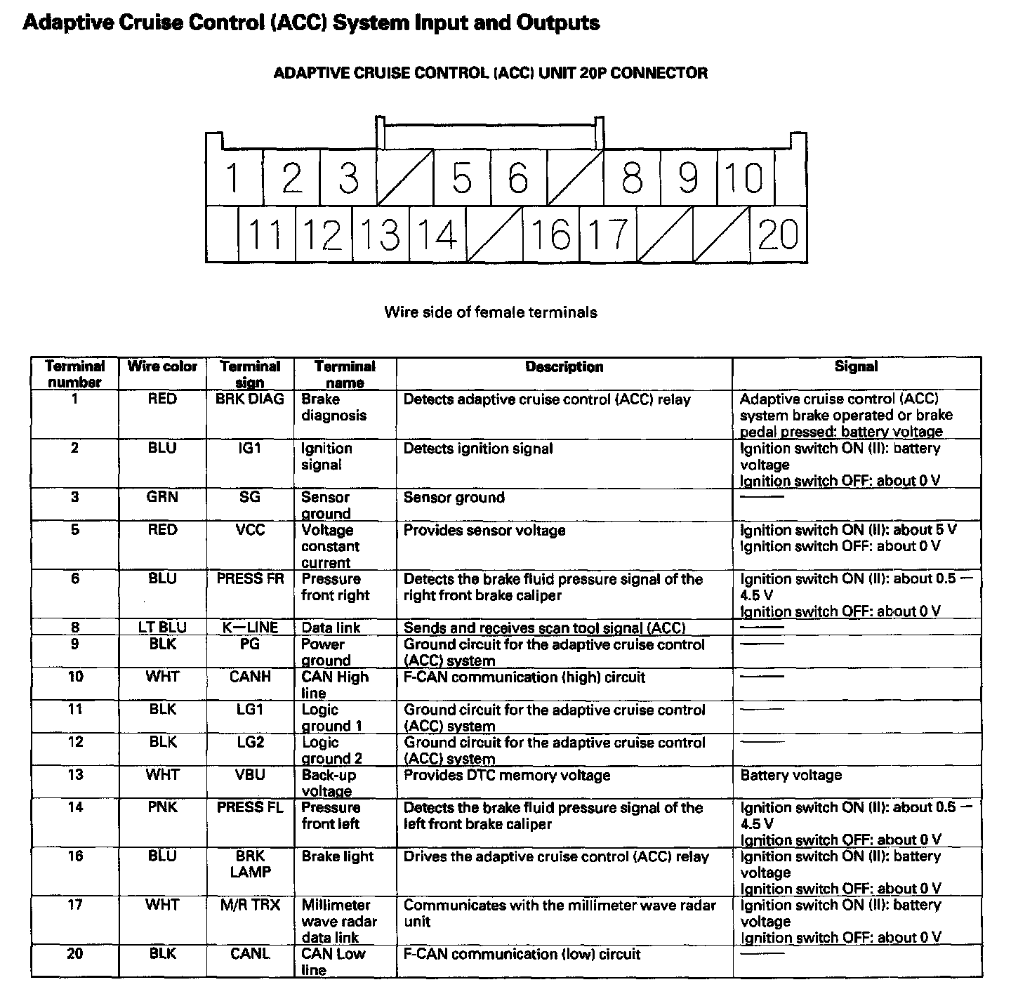 Adaptive Cruise Control (ACC) System Inputs And Outputs: