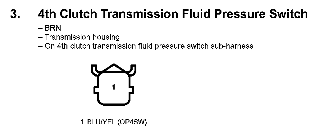 3. 4th Clutch Transmission Fluid Pressure Switch: