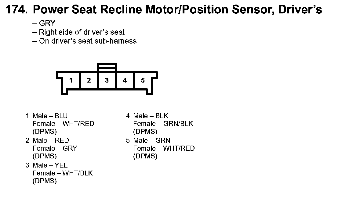 174. Power Seat Recline Motor/Position Sensor, Driver's: