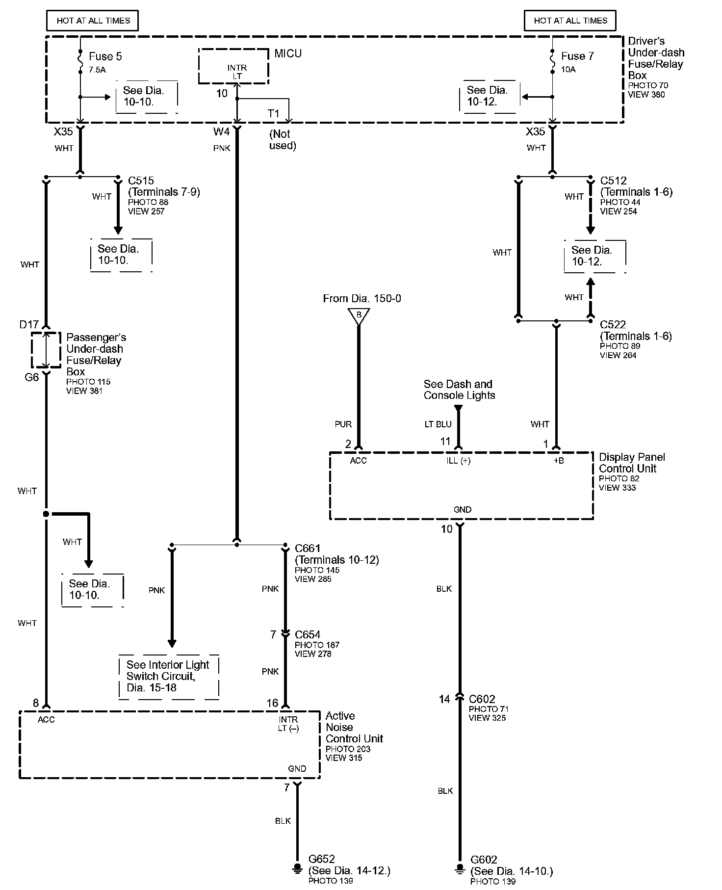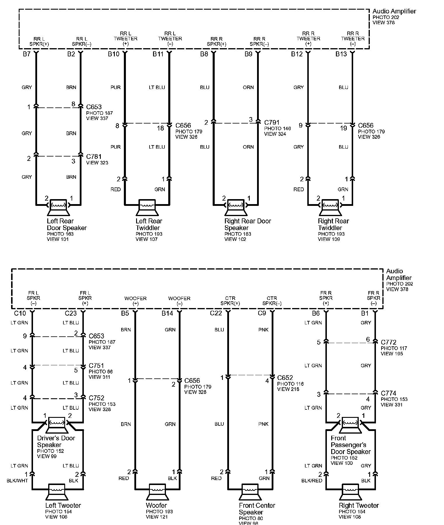 Connector Views: Connector terminal views (references to VIEWS) referred to within these diagrams can be found at Connector Views by View Number. Connector Views By View Number