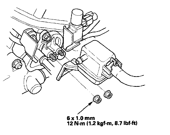 23. Install the two bolts (B) securing the vacuum line.