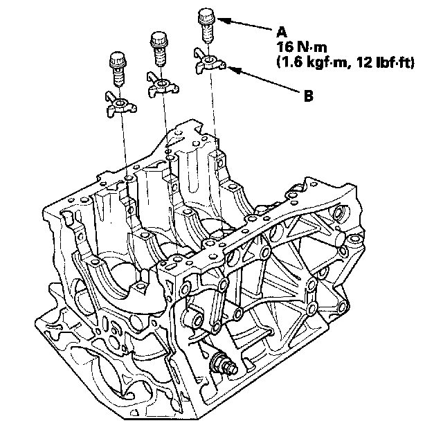 2. Remove the oil jet bolt (A), then remove and discard the oil jet (B).
