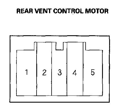 2. Connect battery power to the No. 1 terminal of the rear vent control motor, and ground the No. 2 terminal; the rear vent control motor should run, and stop at Shut. If it doesn't, reverse the connections; the rear vent control motor should run, and stop at Rear Vent.