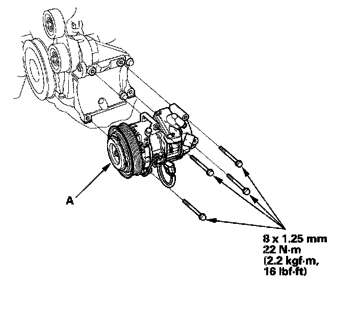 9. Install the A/C compressor in the reverse order of removal, and note these items: