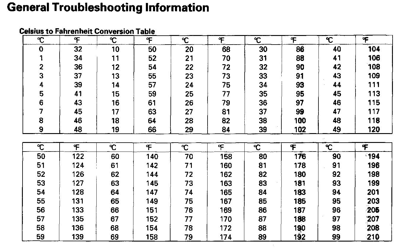 - The sensor values will be displayed in degrees Celsius (degrees C) or an alphanumeric code. Use the chart to convert the value to degrees Fahrenheit (Degrees F).