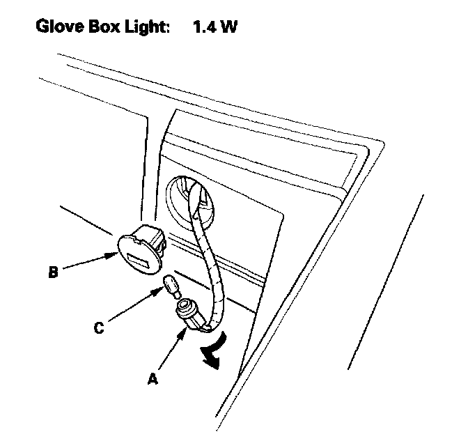 3. Twist the socket (A) to remove it from the glove box light (B).