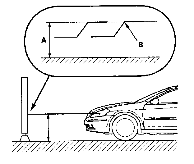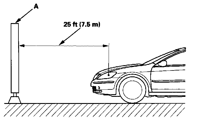 2. Park the vehicle 25 ft (7.5 m) away from a wall or a screen (A).