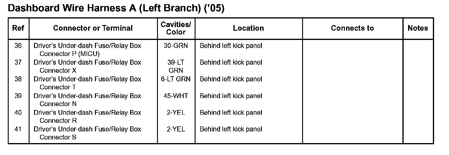 Dashboard Wire Harness A (Left Branch):