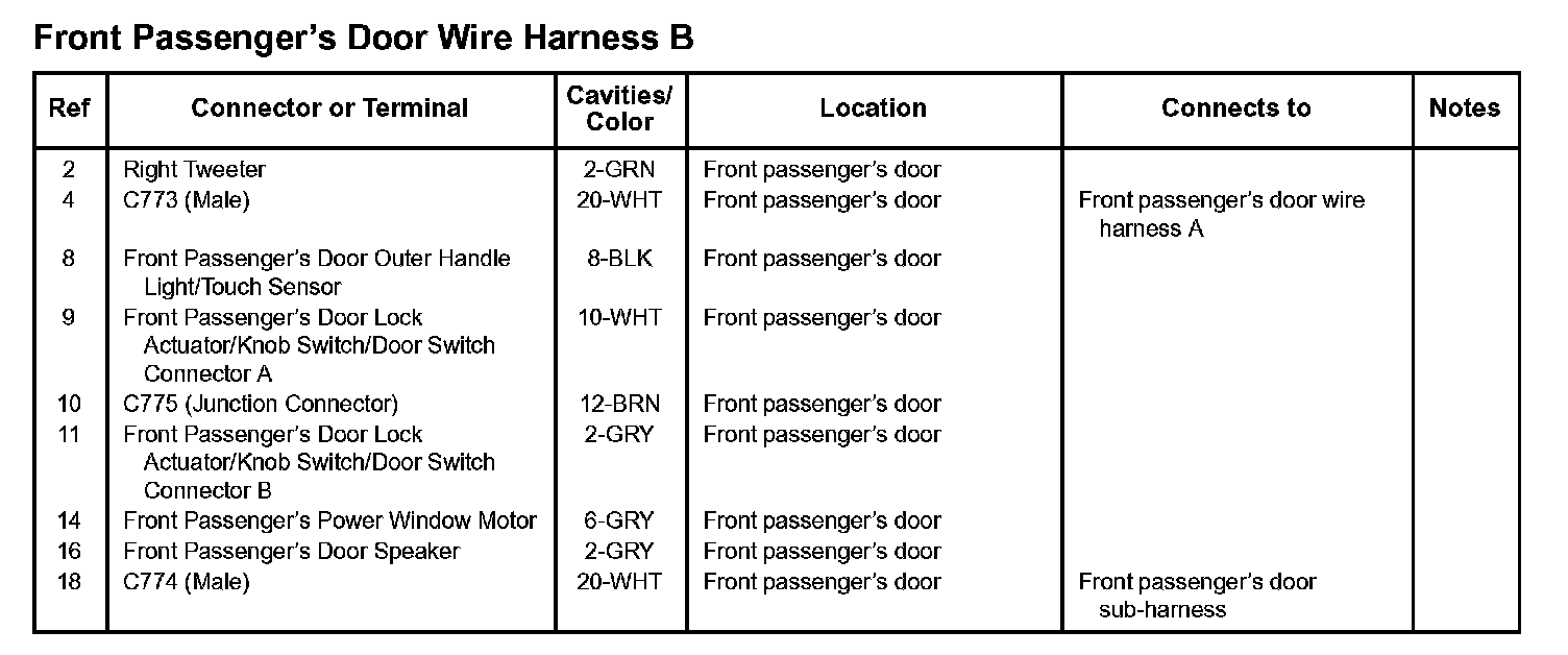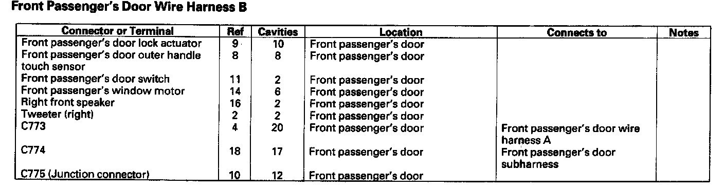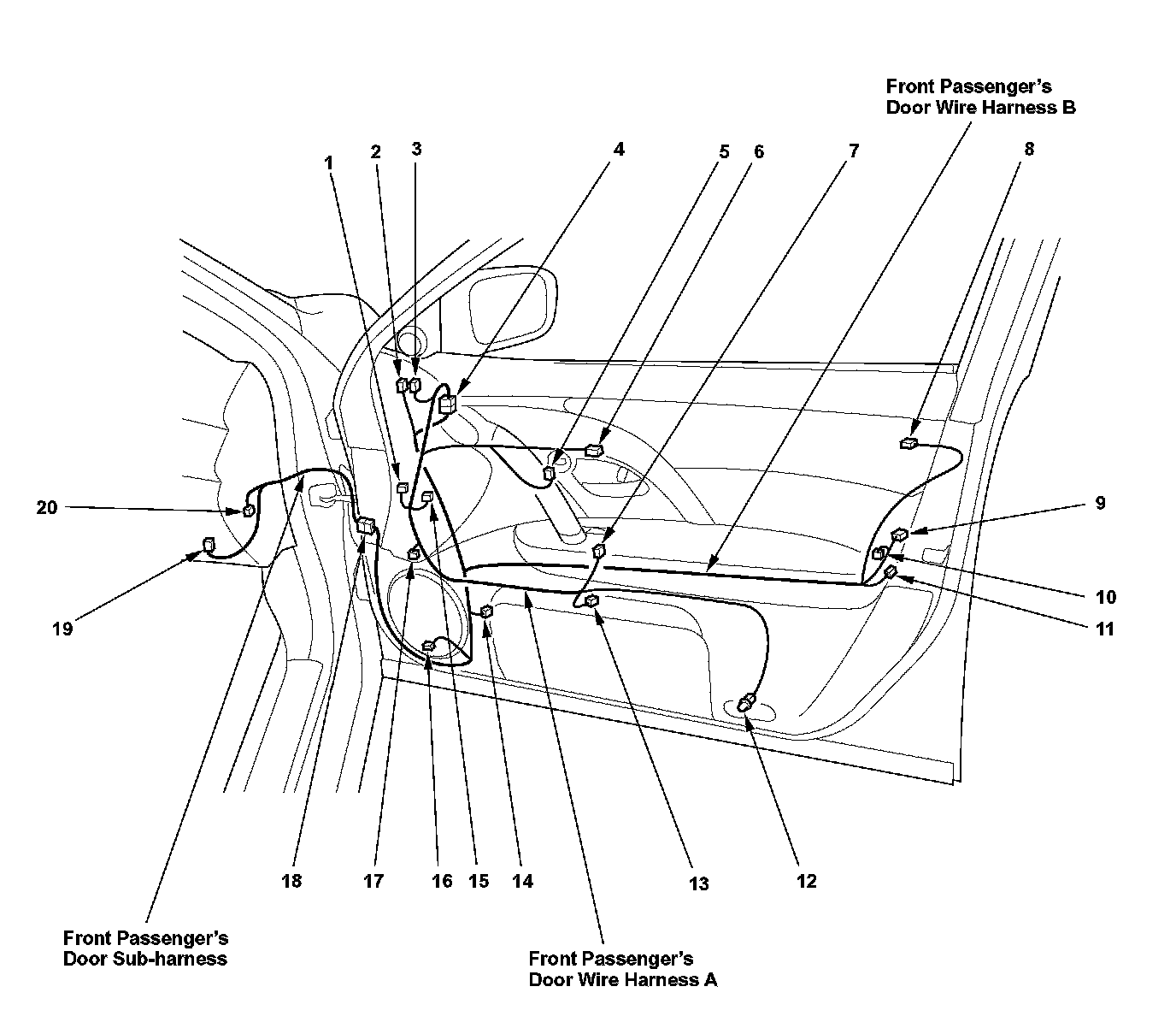 Front Passenger's Door Wire Harness B: