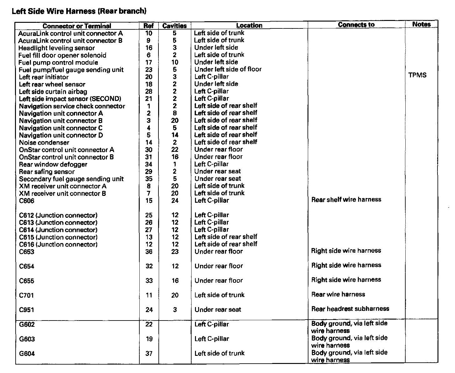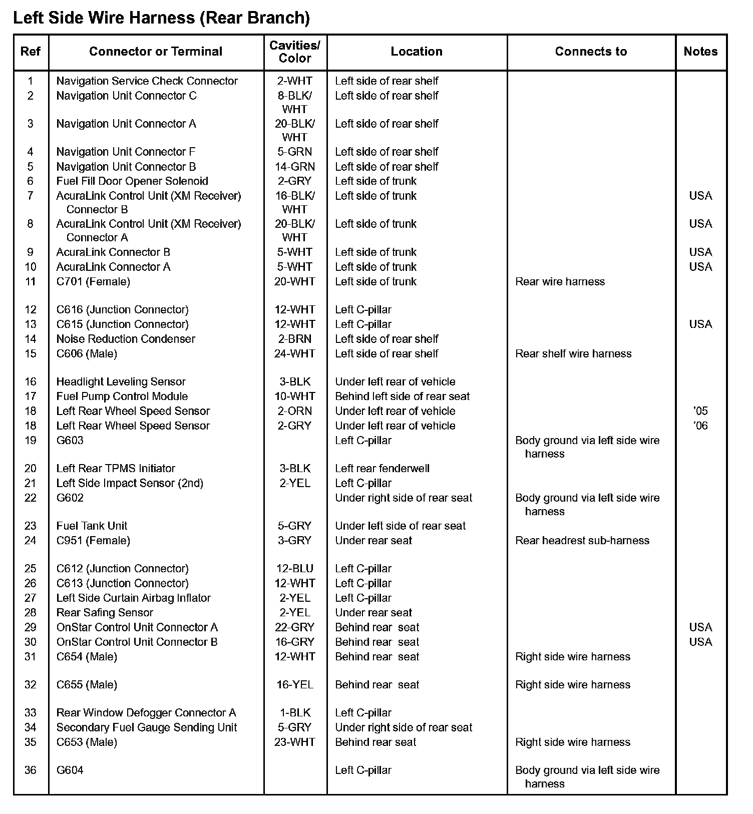 Left Side Wire Harness (Rear Branch):