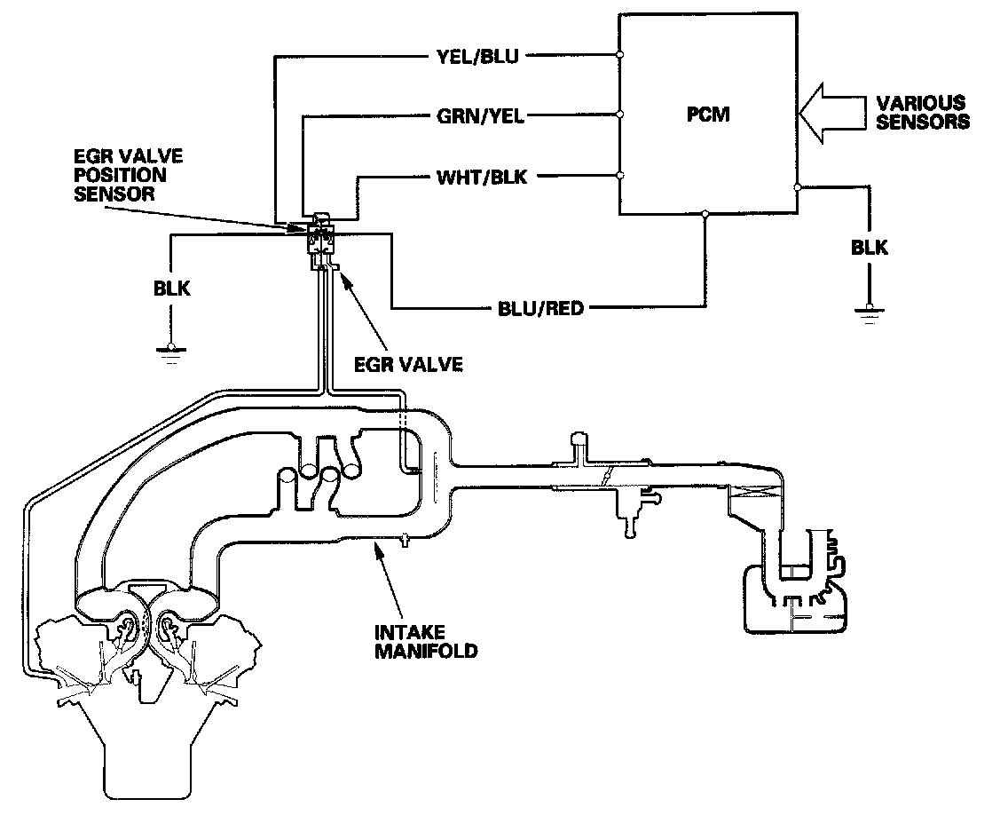 The EGR valve position sensor detects the amount of EGR valve lift, and sends it to the PCM. The PCM then compares it with the ideal lift in its memory (based on signals sent from other sensors). If there is any difference between the two, the PCM cuts current to the EGR valve.