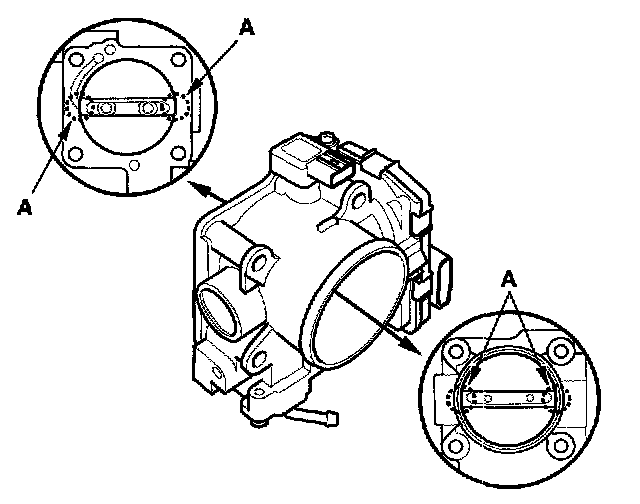 - To avoid removing the molybdenum coating, do not clean the bearing area of the throttle shaft (A).