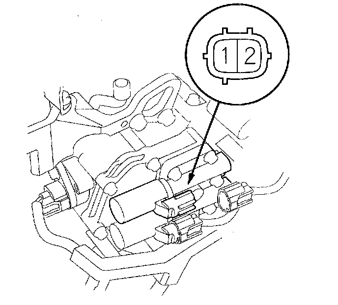 12. Connect the negative battery terminal to the solenoid valve A connector terminal No. 2, and connect the positive battery terminal to the connector terminal No. 1.