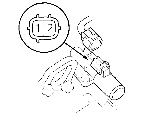 12. Connect the negative battery terminal to A/T clutch pressure control solenoid valve C connector terminal No. 2, and connect the positive battery terminal to the connector terminal No. 1. Make sure the A/T clutch pressure control solenoid valve C moves.