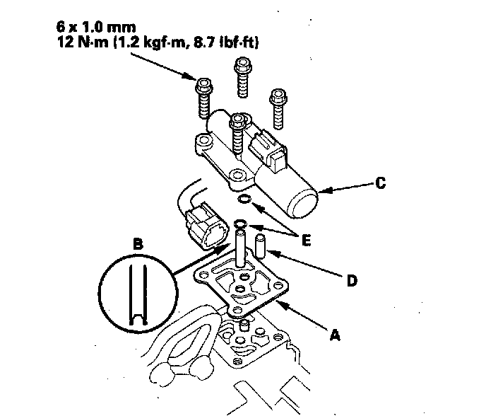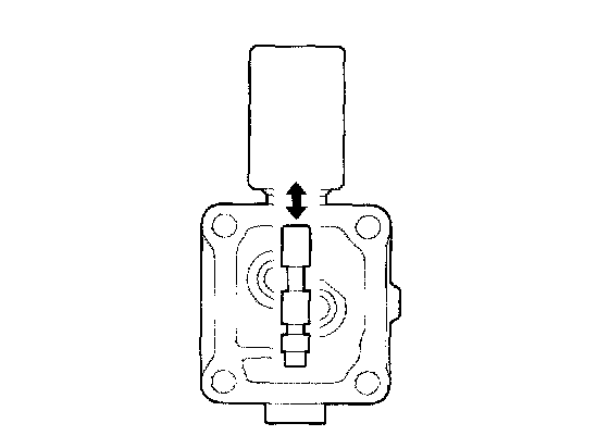 13. Disconnect one of the battery terminals and check the valve movement at the fluid passage in the valve body mounting surface. If the valve binds or moves sluggishly, or if the solenoid valve does not operate, replace the A/T clutch pressure control solenoid valve C.
