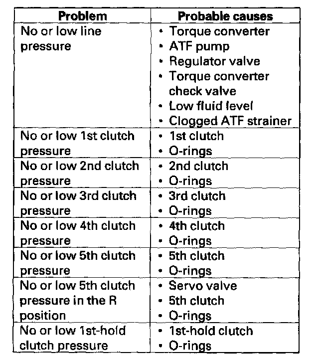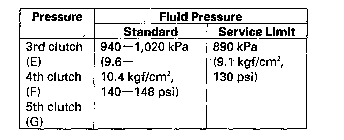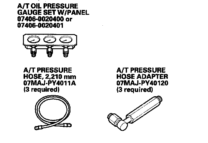 - A/T clutch pressure gauge set 07406-0020400 or 07406-0020401