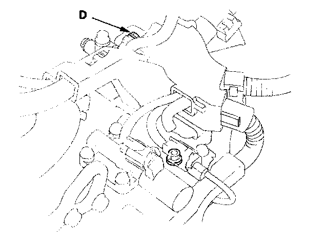 16. Shift up to 2nd gear, and measure the 2nd clutch pressure at the 2nd clutch pressure inspection port (D) while holding the engine speed at 2,000 rpm.