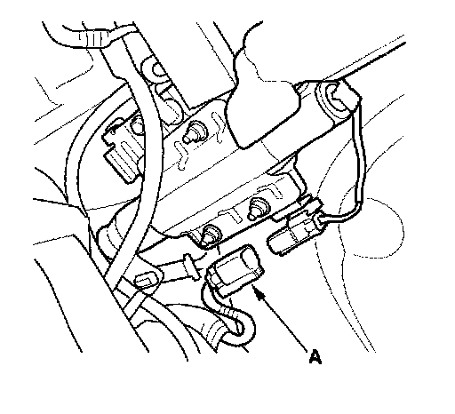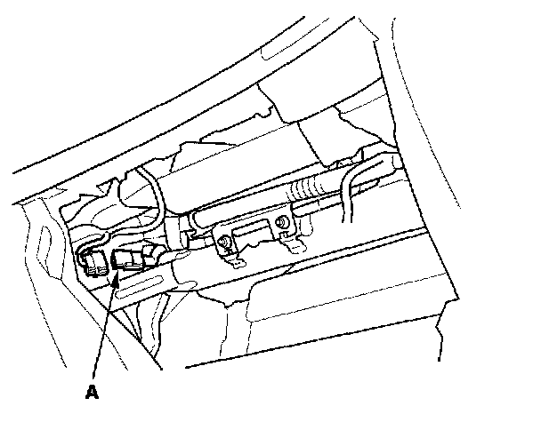 3. Remove the glove box, then disconnect the front passenger's airbag 4P connector (A) from dashboard wire harness A.