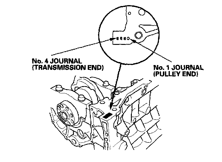Crankshaft Bore Code LocationLetters or bars have been stamped on the end of the block as a code for the size of each of the four main journal bores.