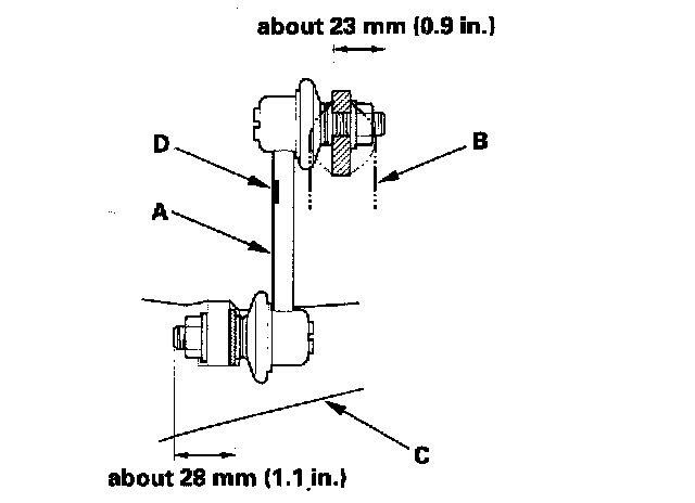 NOTE: The paint mark (D) on the stabilizer link is near the upper end of the stabilizer link.