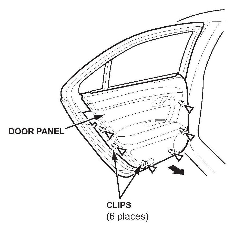 4. Release the clips that hold the door panel with a commercially available trim pad remover.