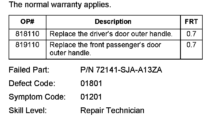 Body - Front Exterior Door Handle Sensor Won't Unlock