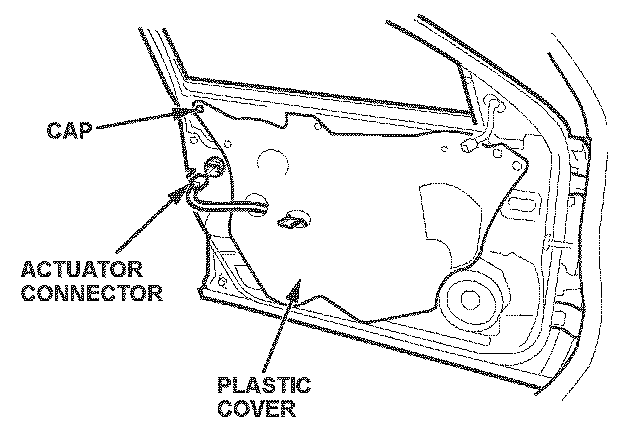 3. Disconnect the latch actuator connector, and remove the cap, then remove the plastic cover as needed.