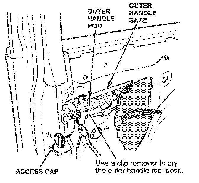 4. Remove the access cap. Using a clip remover, disconnect the outer handle rod from the outer handle base.