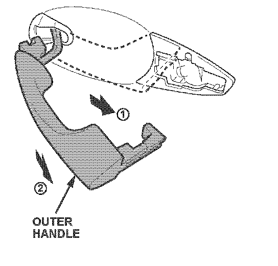 9. Pull the outer handle out and back as shown to remove it from the door. Take care not to scratch the door.