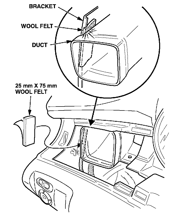 13. Cut one 25 mm x 75 mm piece of wool felt, remove the adhesive backing, and apply the felt to the bracket where it contacts the duct.