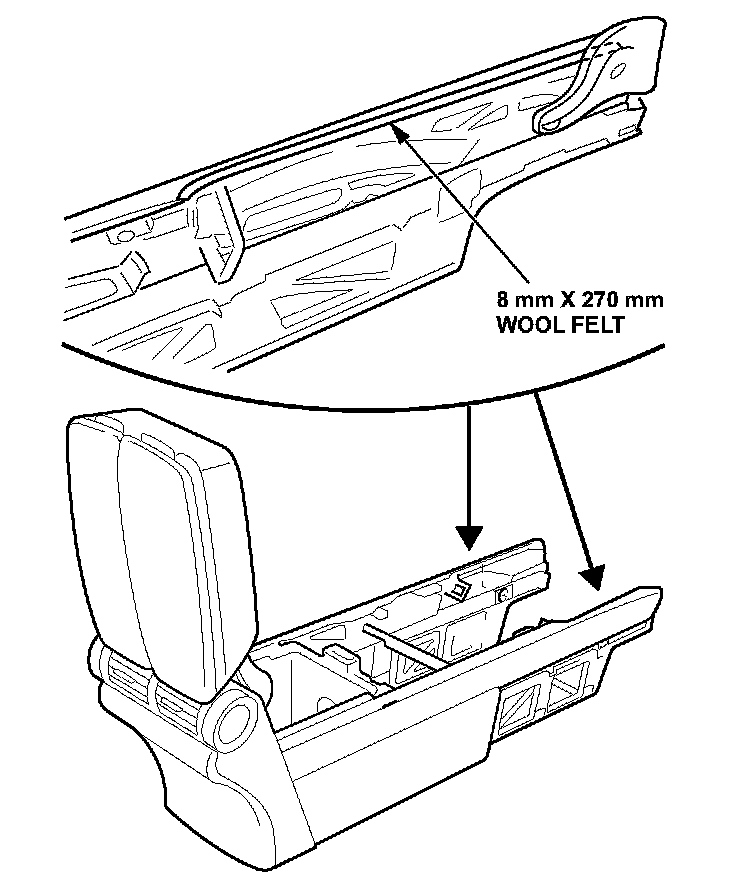 27. Cut two 8 mm x 270 mm pieces of wool felt, remove the adhesive backing, and apply them to the center console.