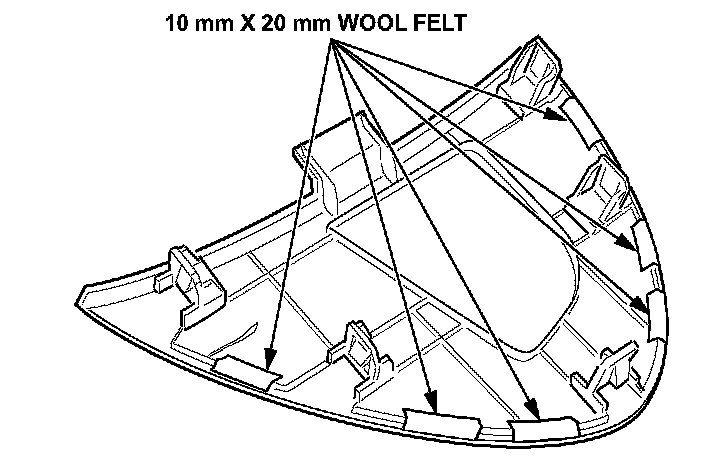 14. Cut one 20 mm x 215 mm piece of wool felt, remove the adhesive backing, and apply it to the bottom edge of the driver's vent panel.