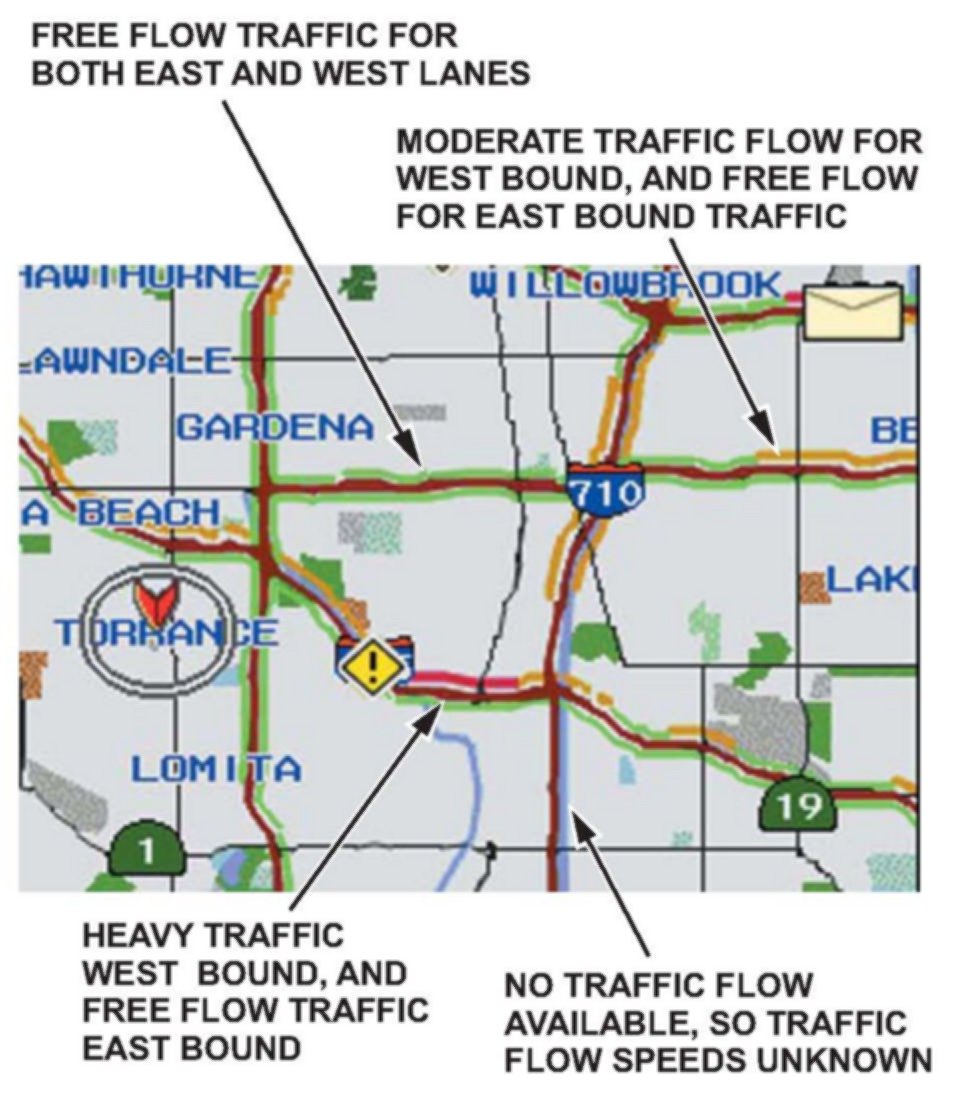 Above is a screen capture of real-time traffic in the Los Angeles area that shows traffic flow and accident incident icons.