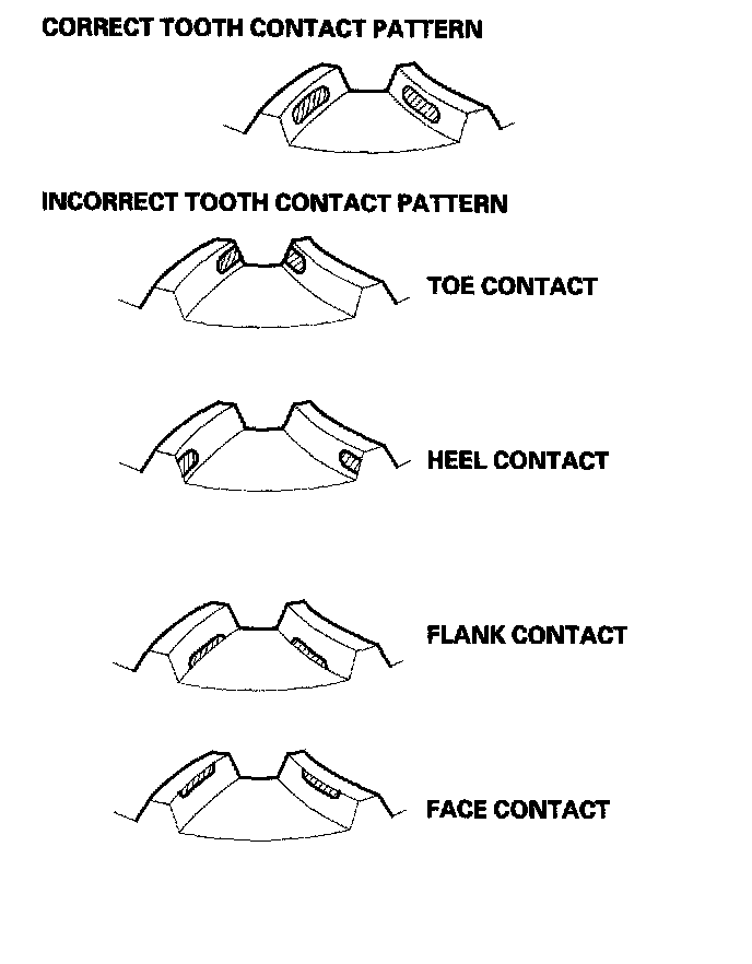 Face contact must be adjusted within the limits of the transfer gear backlash. If the backlash exceeds the limits, adjust as described under Toe Contact.