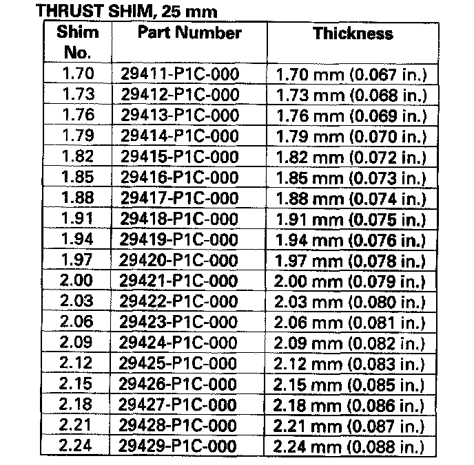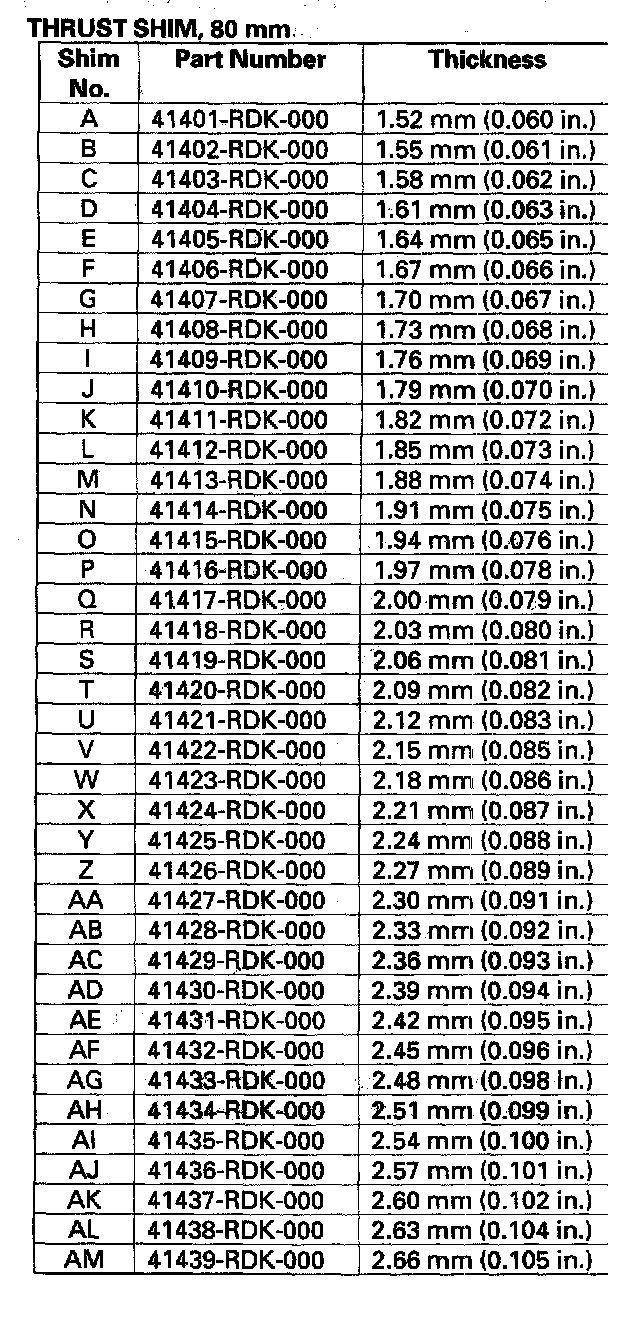 - Reduce the thickness of the 80 mm thrust shim by the amount of increase thickness of the 25 mm thrust shim.
