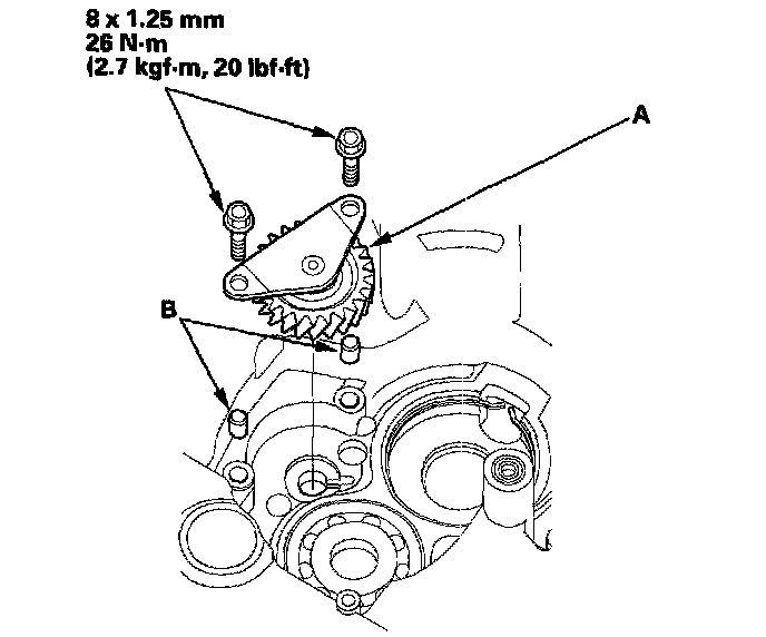 1. Remove the three 6.0 mm bolts securing the ATF filter cover (A) and ATF pipe (B).