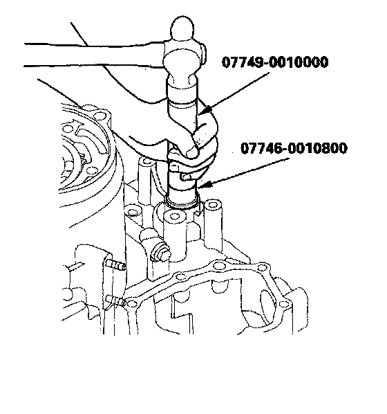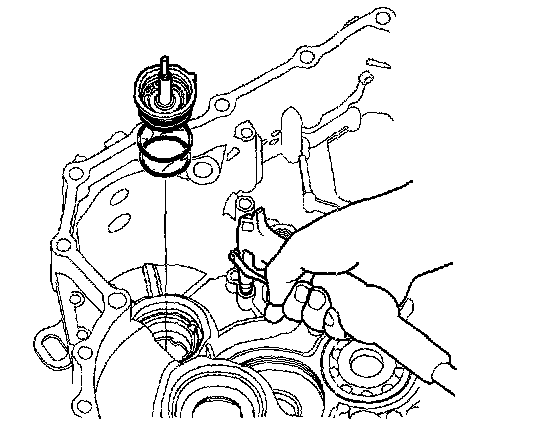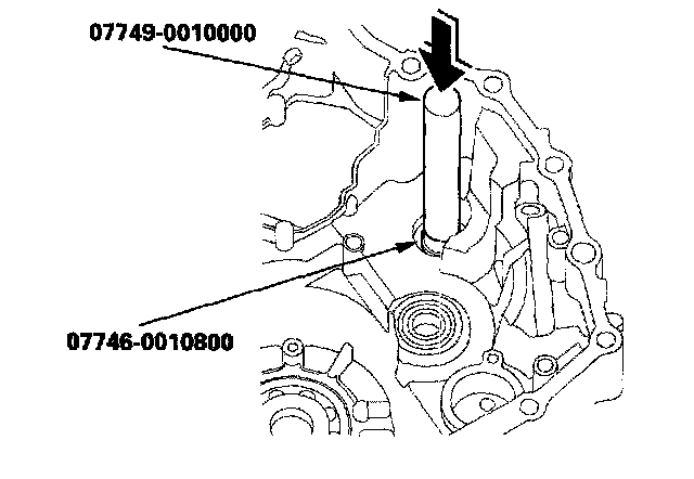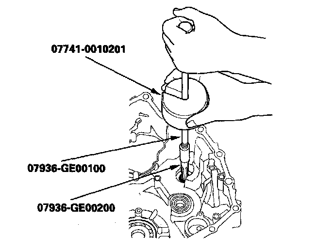 2. Install the now bearing until it bottoms in the transmission housing with the special tools.