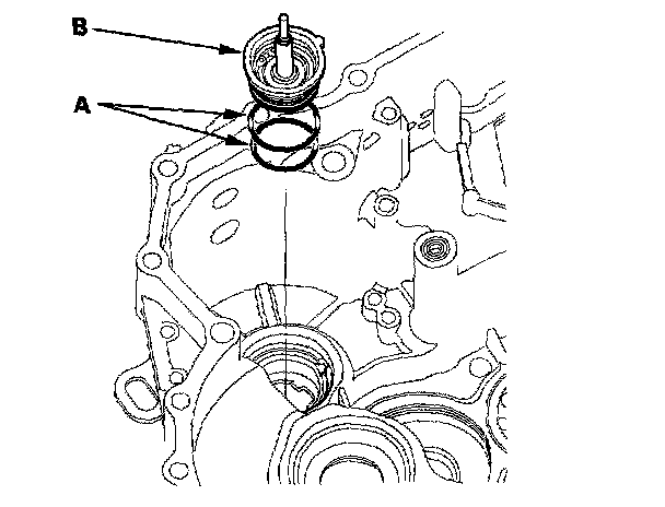 1. Install the new O-rings (A) on the ATF feed pipe cap (B).
