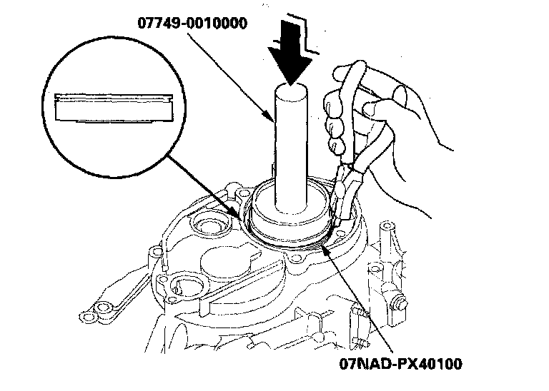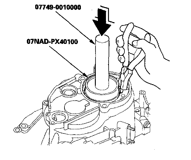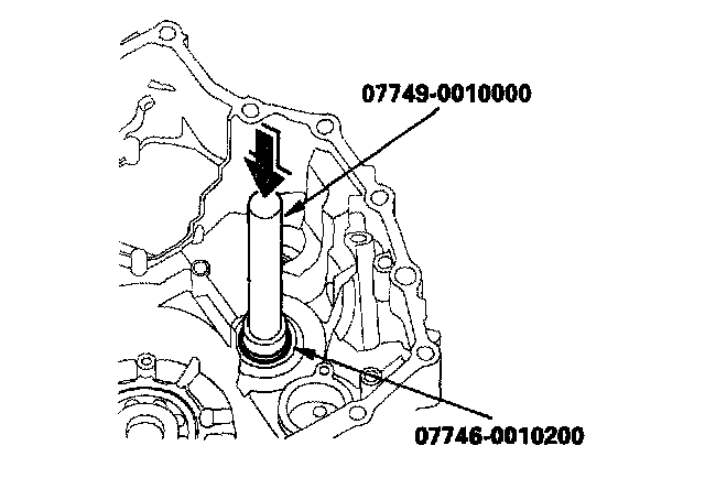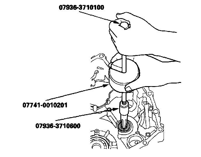 2. Install the new oil seal in the transmission housing with the special tools.